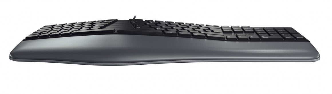 Simple relief can be provided by an ergonomic keyboard such as the CHERRY KC 4500 ERGO. With its special design, your hands and arms take up a more natural position by themselves. This relieves your shoulders and back and your relaxed posture reduces stress. The extra-soft palm rest with memory foam prevents pressure points and lets you rest your hands comfortably.