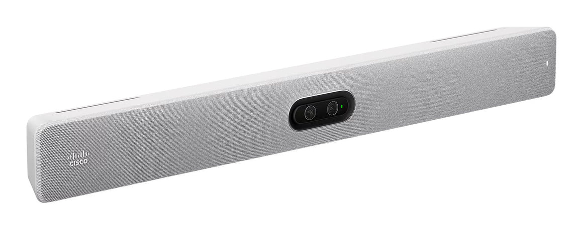 Cisco Room Bar Pro is an integrated, AI-enhanced video bar solution featuring intelligent dual cameras, a three-channel loudspeaker system, built-in microphone array, a powerful computing engine and rich connectivity options, combined with an intuitive touch controller and smart room accessories to provide intelligent, inclusive video collaboration for medium-sized meeting spaces.