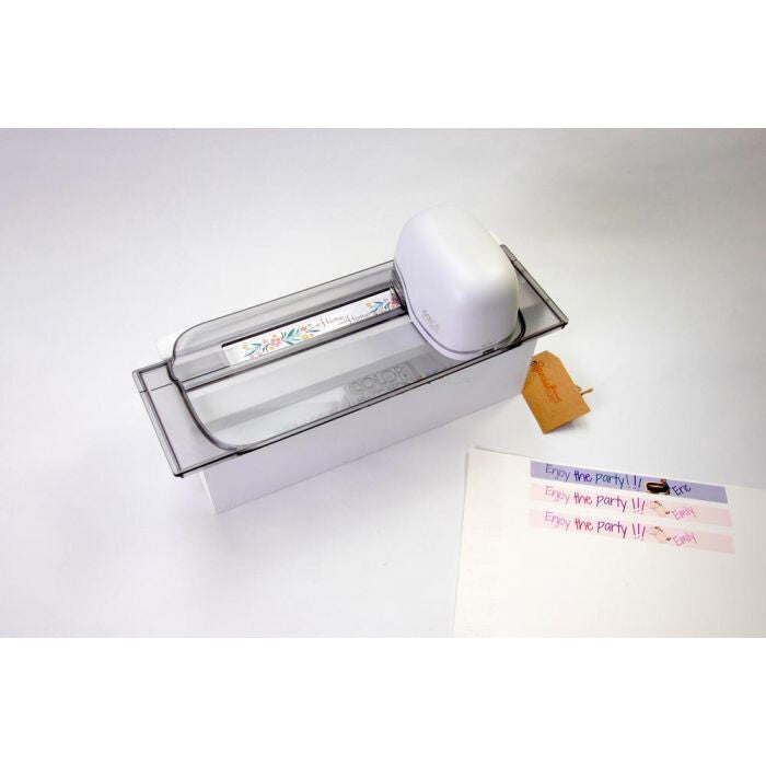 Enables straight imprints, printing on edges on almost any surface *Ideally used with e-mark ribbons, wristbands and the label range.
