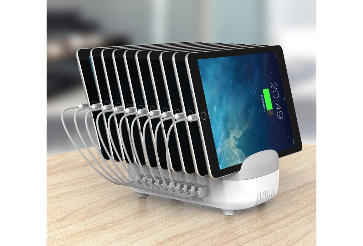 Function: This product can charge 10 mobile phones or tablets at the same time. Each slot is 0.59" (15 mm) thick. Strong input power, single-port 5V/2.4A 10-port output up to 120W.