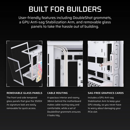 With a modern design approach to a mainstream PC format, the 3500X has the convenient features to take the hassle out of your build.