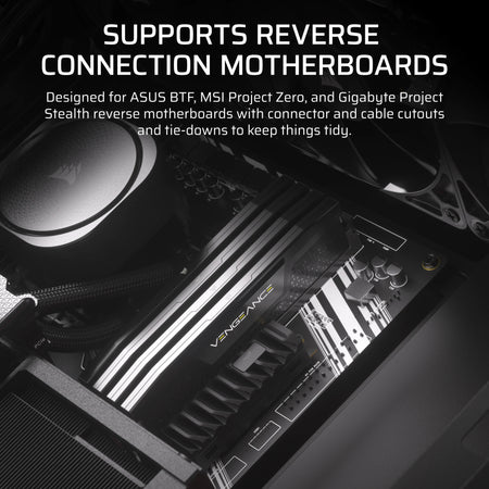 Fully compatible with reverse-connector motherboards from Asus, MSI, and Gigabyte, allowing for unobstructed airflow and a super-clean build.