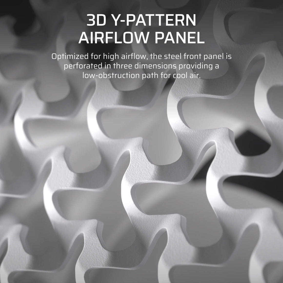 Engineered for maximum airflow and minimal resistance, the new 3D Y-pattern steel front panel ensures a smooth, unobstructed path for cool air, enhancing overall cooling.