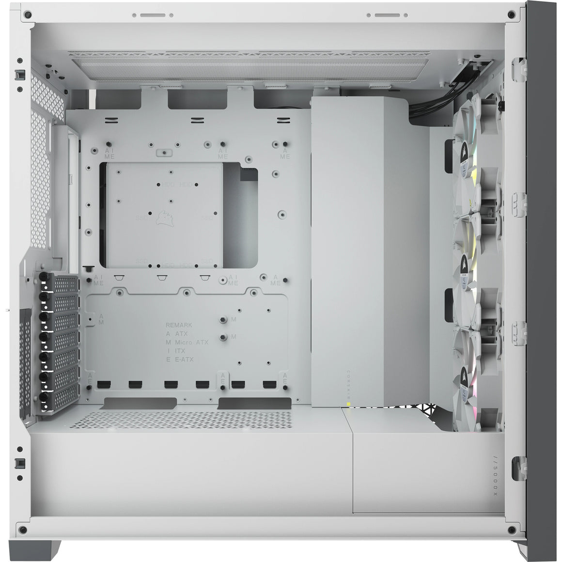 The 5000X RGB has incredible flexibility when it comes to cooling. With up to ten 120mm fan mounts, three included SP RGB ELITE fans with CORSAIR AirGuide technology and three seperate 360mm radiator locations, the only limit to your cooling options is your imagination.