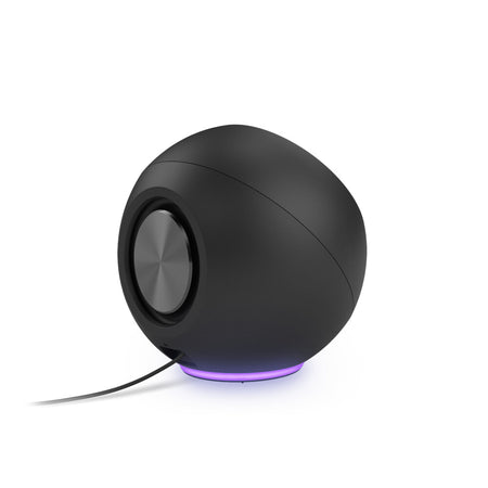 Whether black or white, make a statement and stand out with this orb-shaped speaker, seamlessly enhancing any setup.