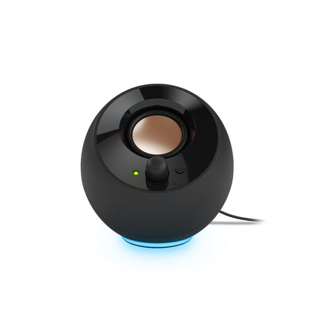 At just 116 mm / 4.6” tall, Creative Pebble SE is built to fit into any corner of your room or house, adding an aesthetic flair without taking up much space. Complete with a convenient volume knob for quick controls.