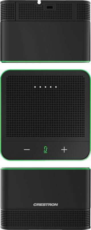 The Crestron Flex UC-AUDIO-POD-B is a wireless tabletop conferencing device with a speaker and four microphones that is ideal for small to large rooms. The pod wirelessly connects and transfers audio to and from a paired Crestron Flex UC-AUDIO-HUB. The connected hub receives and sends audio to a UC Engine through a USB-C® connection. Up to four pods can connect with the hub, providing omnidirectional sound in large or medium conference rooms and multi-purpose meeting spaces. The pod can be placed anywhere within a room or mounted on a table, depending upon the size and shape of the meeting space.