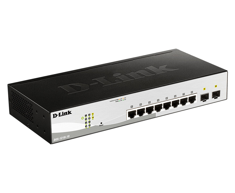 The DGS-1210 Smart+ family has advanced network management options, accessible via Compact CLI or the Web-based UI, that equip your business with network capabilities such as VLANs, multiple spanning tree protocol (MSTP), link aggregation (LACP), static routing, dual software images, and dual configuration files.