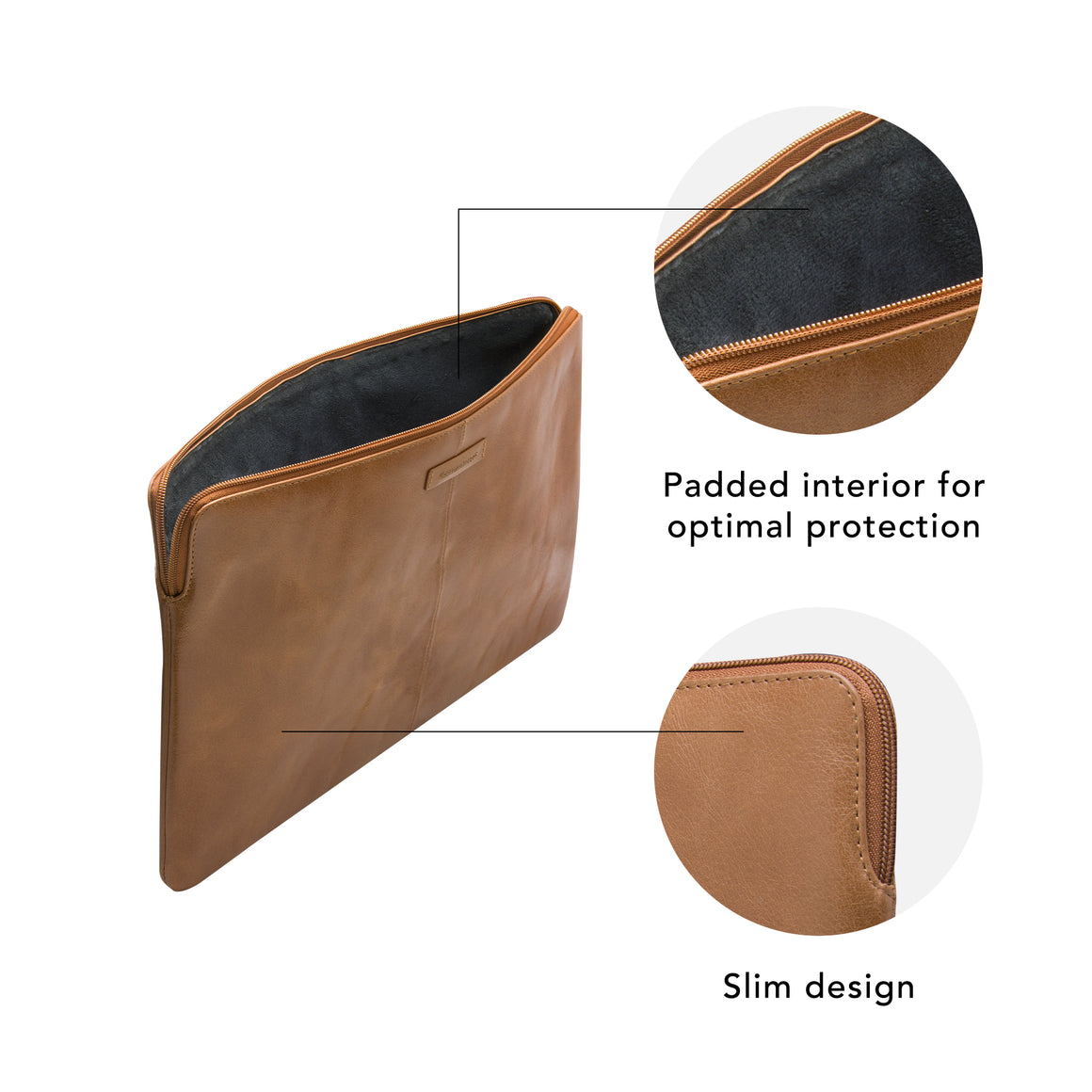 Skagen Pro is a slim yet protective computer sleeve for your MacBook or PC - functional minimalism at its finest. The sleeve is handmade from sustainably sourced full-grain leather and has an impact protective padded and soft inner.