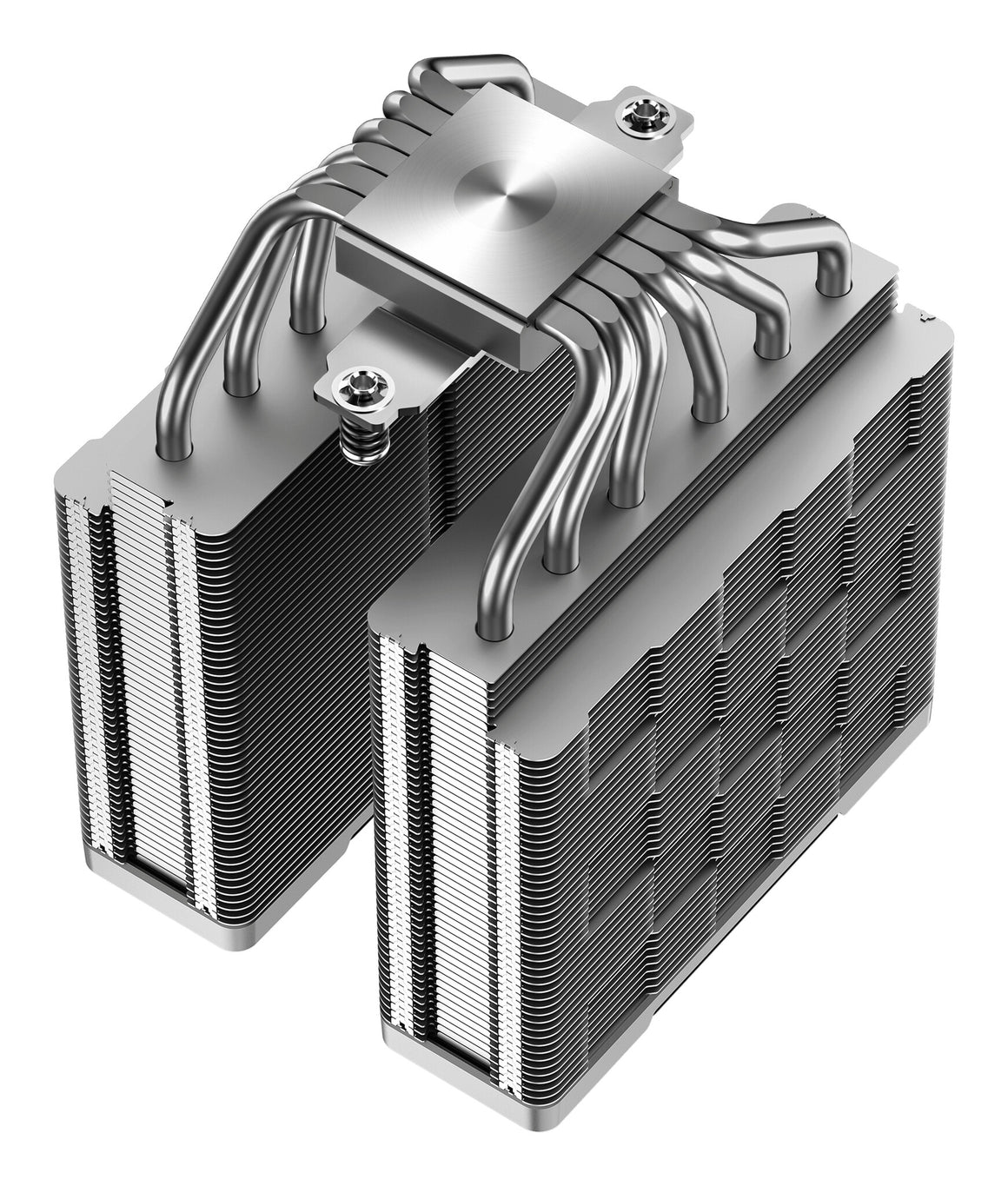 Achieve dominant cooling and silent efficiency with the DeepCool AK620 High Performance CPU Cooler equipped with six copper heat pipes stacked with a dense dual-tower fin array and two 120 FDB fans.