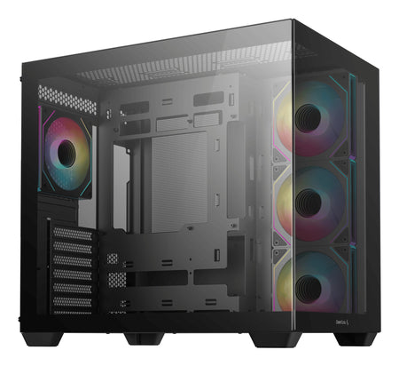 The CG530 4F is a panoramic ATX case featuring fully glass-covered front and side panels. It comespre-installed with 4 PWM ARGB fans, delivering a captivating gaming ambiance, and transforming your buildinto the ultimate "SHOW CASE". With room to support 160mm air coolers or 360mm radiators, coolingwill not be an issue.