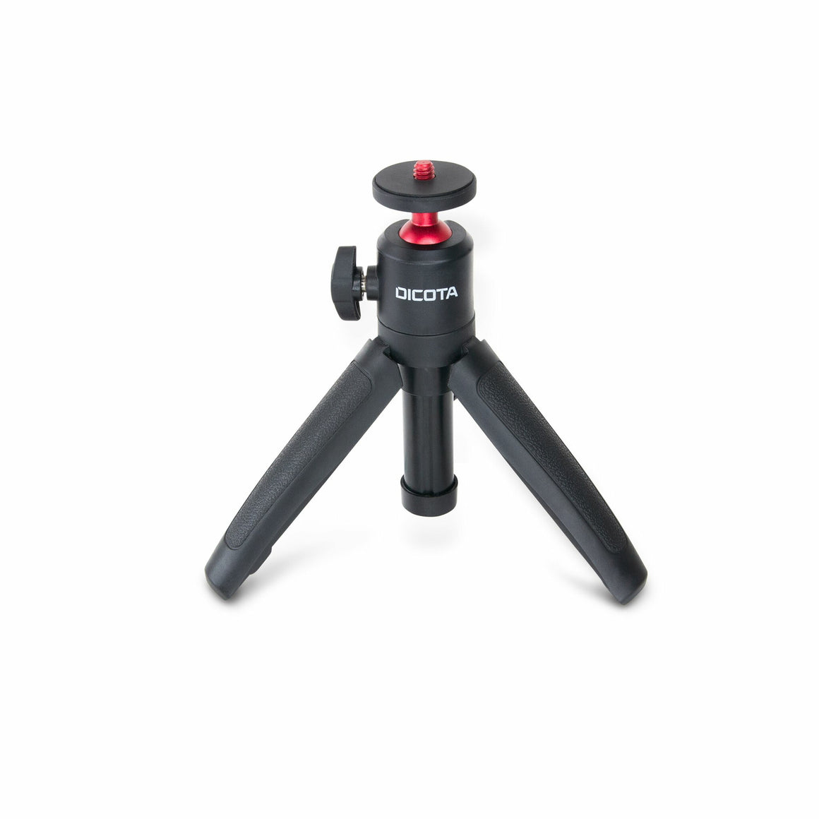 The Webcam Tripod Stand is 147mm in height when fully collapsed. When set up this way, it can be used as a desktop tripod or a short handgrip. It's designed with a center column that extends out, bringing the maximum height to 245mm. It offers durability and flexibility thanks to an integrated tilt and swivel ball head.