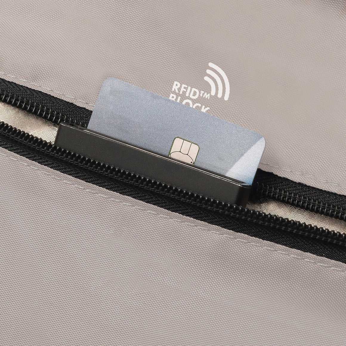 The Top Traveller FIVE is designed to protect your devices while keeping essentials easily accessible. The lockable notebook compartment with DCT Notebook Protection and HDF foam & EVA corner padding ensures maximum security, while an integrated slip pocket provides safe storage for tablets up to 12.9". The main compartment offers ample space for documents, folders, or mobile equipment, and the front section features organized pockets for accessories. A small front pocket adds extra storage for cables and smaller items. Made from 23.5 recycled PET bottles.