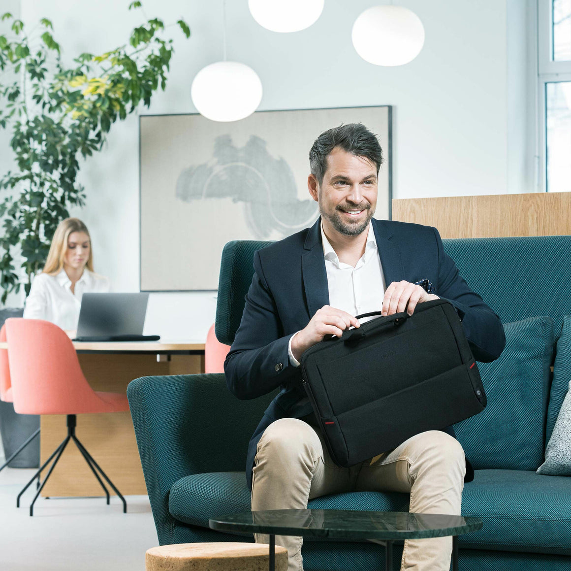 The Eco Slim Case Plus BASE offers ideal protection for laptops between 13 and 15.6" thanks to its high-density foam (HDF) padding. The case fully protects your device and the elastic strap also secures it within its compartment. The case is comfortable to carry thanks to its padded carrying handle and adjustable shoulder strap. There is an extra compartment on the back, in which you can easily store documents. Your smartphone or other smaller items like cables, pens or chargers can be stored in the convenient front pocket, so they are always to hand. There is also a separate compartment for your power bank and cables, so you can keep them organised. The Eco Slim Case Plus BASE is therefore perfect for you if you are always on the go and want to support the recycling of PET bottles with an eco-friendly bag.