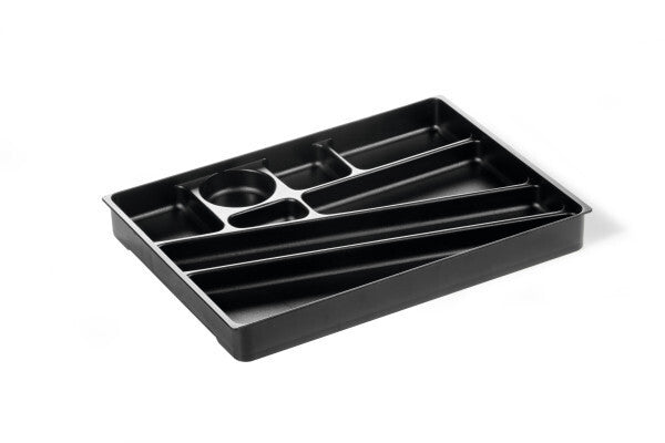 Pen tray for utensil drawers in mobile storage containers and desk cabinets, or for insertion into the IDEALBOX PLUS drawer box. The product bears the Blue Angel Ecolabel. Dimensions: 240 x 36 x 340 mm (W x H x D) Material: polystyrene, min. 80% post-consumer recycling material