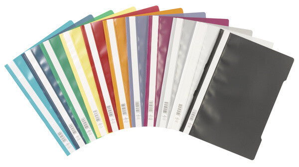 Standard quality folder. With clear front cover, full-length label holder and cut-out to facilitate page turning. Now available in 3 limited edition Trend colours.