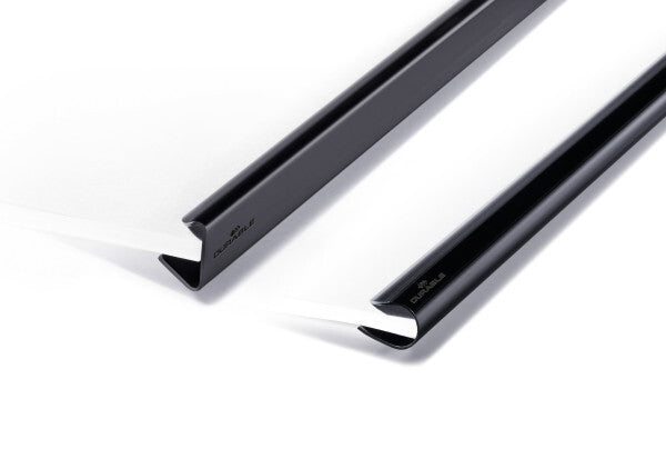 DURABLE's plastic spine bars are a versatile binding system for unpunched papers. With different capacities, available in 8 colours, the uniquely designed contoured ends provide simple and easy insertion of all papers. Length: 297 mm (A4), Binder Width: 13 mm, Depth cap.: 12 mm, Capacity sheets: 40-100