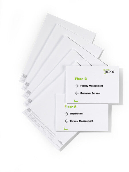 Computer compatible A4 refill/printable inserts for the INFO SIGN size 210 x 148.5 mm. Inserts can be professionaly printed using INFO SIGN Software (download free of charge from this website). Pack contains 10 sheets (20 inserts).