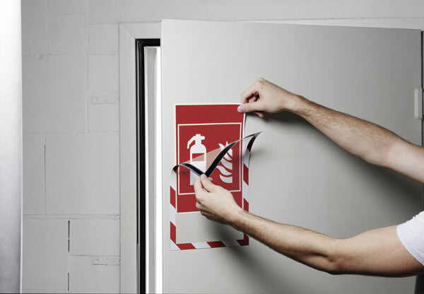 Twin coloured magnetic frame for displaying all types of safety and warning inofrmation. Safety signs and instructions can be exchanged quickly and easily. Adheres to all magnetic surfaces. Can be used in either A4 portrait or landscape format.