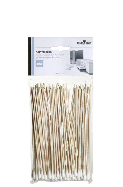 100 extra-long cotton buds for cleaning inaccessible parts of office equipment.