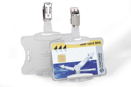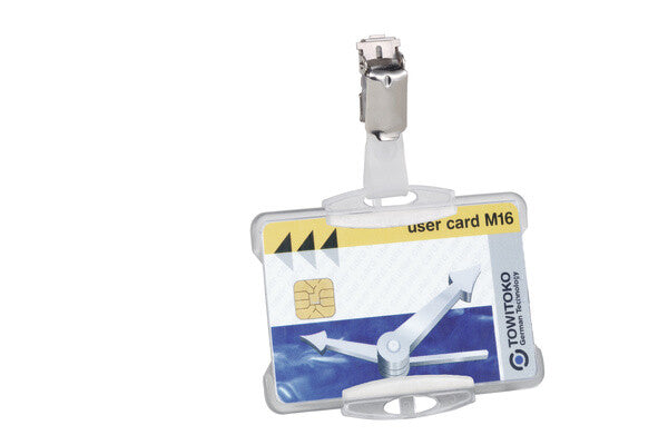 Attractive holder with clip that holds security identification passes and magnetic card passes. Flexible format - can be used portrait or landscape. Made of high quality polystyrol. Holder can also be used with badge chain (8104). Identification cards/magnetic swipe cards held securely, design ensures no damage to magnetic strip.