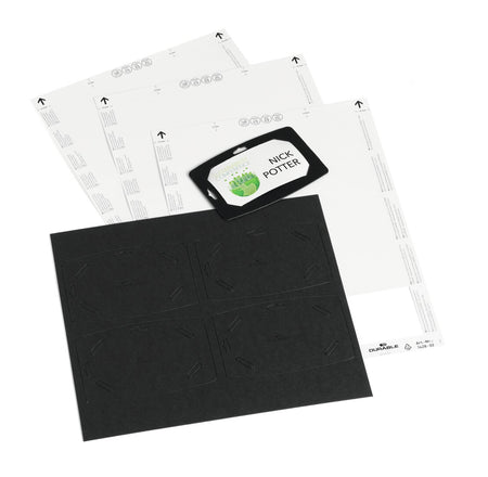 - Scope of delivery: 20 name badge holders (4 holders on one sheet, 5 sheets in a set). In addition, 3 printable A4 BADGEMAKER® sheets for a total of 30 badges