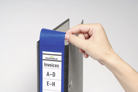 Self-adhesive spine labels for lever arch files with PC-printable, blank insert labels. Easy, professional printing using the free DURAPRINT labelling software. For 70-mm-wide lever arch files. Dimensions: 390 x 60 mm (H x W)