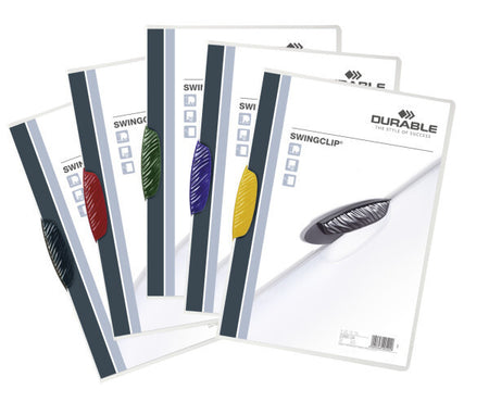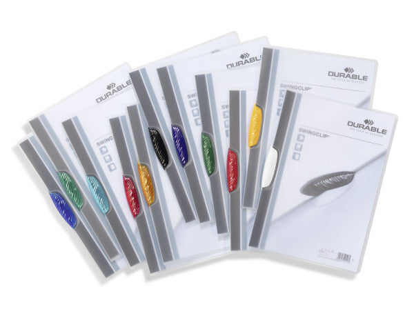 Swingclip is the attractive, fresh clip folder for all presentations and filing, without the need for punching any holes! Easy to use: swing the coloured clip outwards, insert papers, close the swingclip. Perfect.