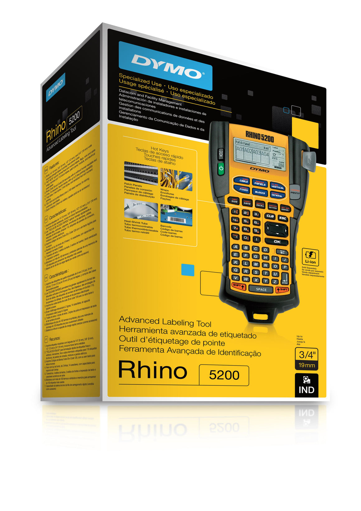 Rugged, versatile and packed with time-saving features, Rhino 5200 meets all ANSI and TIA/EIA-606-A labelling standards – and outperforms industrial labellers costing twice as much. Time is money, and Rhino’s patented one-touch “hot keys” save you both on every job. Press one “hot key” to automatically size, space and format text for perfect patch panel labels – then press another to print matching cable flags or face plate tabs, without retyping! It’s just as easy to print module and fixed-length labels, horizontal and vertical wire wraps, terminal and 110 blocks and much more. Print Code 39 and 128 barcodes for simple asset management. Automatically print single- and double-character incremental labels. Avoid repeated keystrokes with last-label recall and memory for 100 commonly used labels. Choose from 100+ preprogrammed industry symbols, fractions and punctuation marks. And get smart on-screen alerts that prevent mistakes (and wasted labels). Rhino 5200 prints heat-, chemical- and UV-resistant flexible nylon, permanent polyester and vinyl labels with industrial-strength adhesives, as well as heat-shrink tubes and non-adhesive labels. And it’s tough, with a no-slip grip and an integrated rubber bumper that cushions falls and accidents. Run it on 6 AA alkaline batteries (not included) – or on an optional, quick-charging lithium-ion battery that keeps going when other labellers run out of juice. Package includes Rhino 5200 labeller, 19mm (3/4”) white flexible nylon label cartridge, User Manual (on CD-ROM) and Quick Reference Guide.