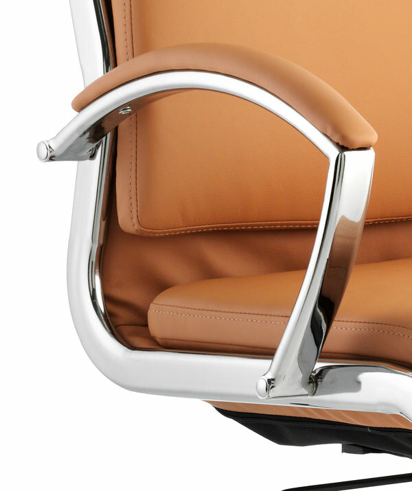 leather upholstery. The generous seating proportions are deeply padded to provide day long comfort. There are appealing chrome details throughout, including the padded, upholstered arms. Bring some class to your office with the Classic