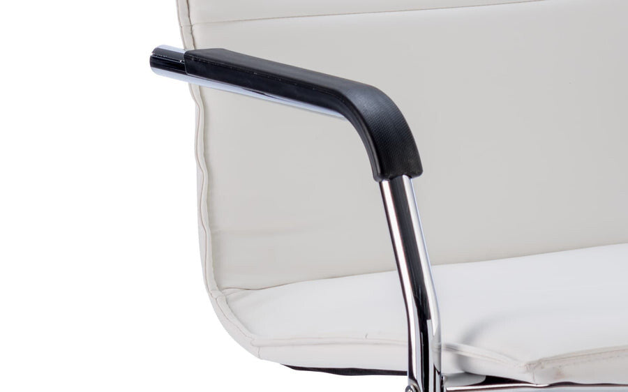 Sleek design meeting chair is ideal for boardrooms with its unique all in one soft leather shell, curved chrome frame and padded arms this chair offers a designer look for those on a budget.
