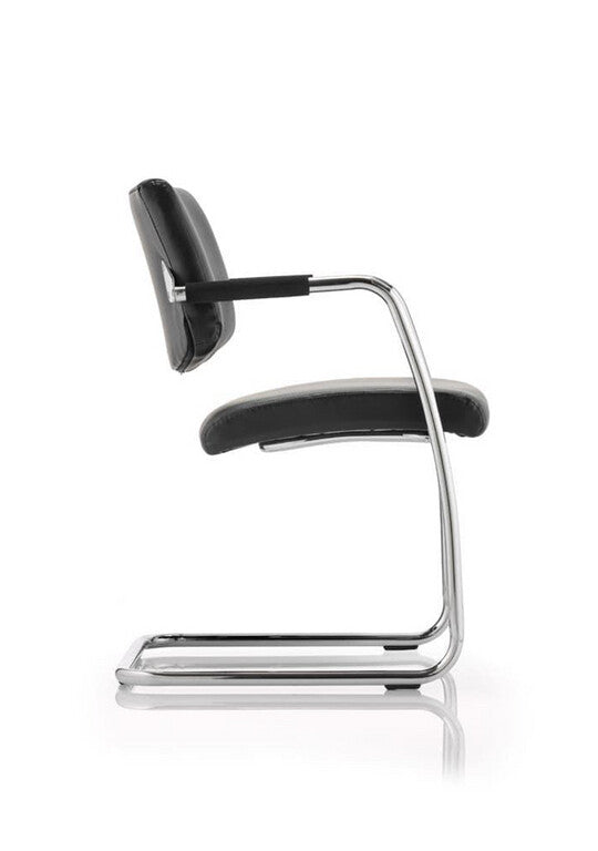Make the right impression in your boardroom or meeting room. Soft leather and strong cantilever frame with padded arms it is affordable yet sleek and modern.