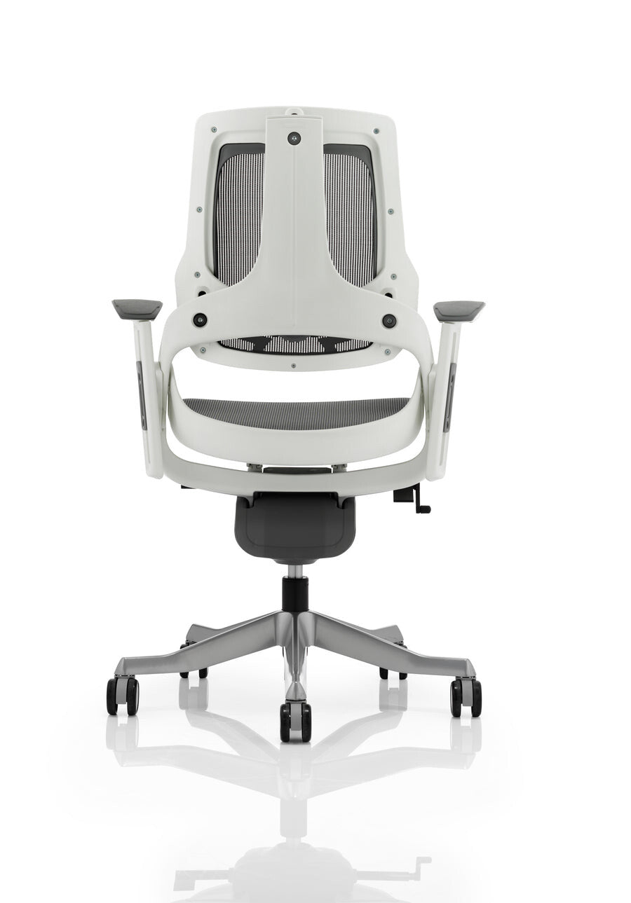 Boldly going where no chair has gone before. The Zure takes you to a new comfort destination. Our unique range of this distinctive, uber stylish posture perfect seating solution has it all. There are fine mesh, fully upholstered, partly upholstered and stunning flexible elastomer options. The seat and backrest are carefully contoured to provide maximum comfort. The high quality outer skeleton wraps the user in touch point technology. Padded arm rests on the fabric and leather options provide pleasing eye-appeal whilst the elastomer versions have colour coded armrests. The polished aluminium base houses highlighted castor detailing.
