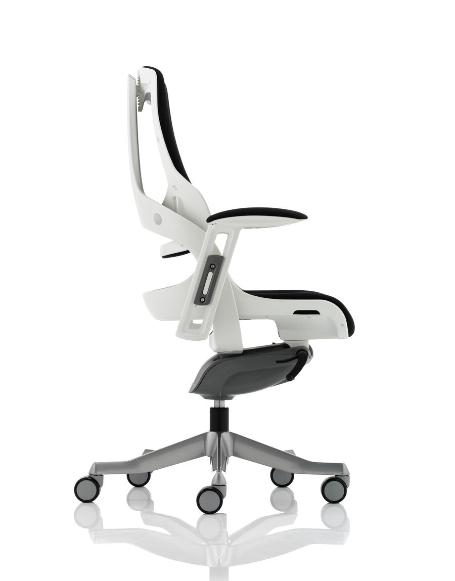 Boldly going where no chair has gone before. The Zure takes you to a new comfort destination. Our unique range of this distinctive, uber stylish posture perfect seating solution has it all. There are fine mesh, fully upholstered, partly upholstered and stunning flexible elastomer options. The seat and backrest are carefully contoured to provide maximum comfort. The high quality outer skeleton wraps the user in touch point technology. Padded arm rests on the fabric and leather options provide pleasing eye-appeal whilst the elastomer versions have colour coded armrests. The polished aluminium base houses highlighted castor detailing.