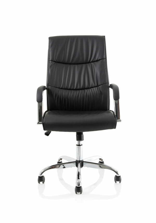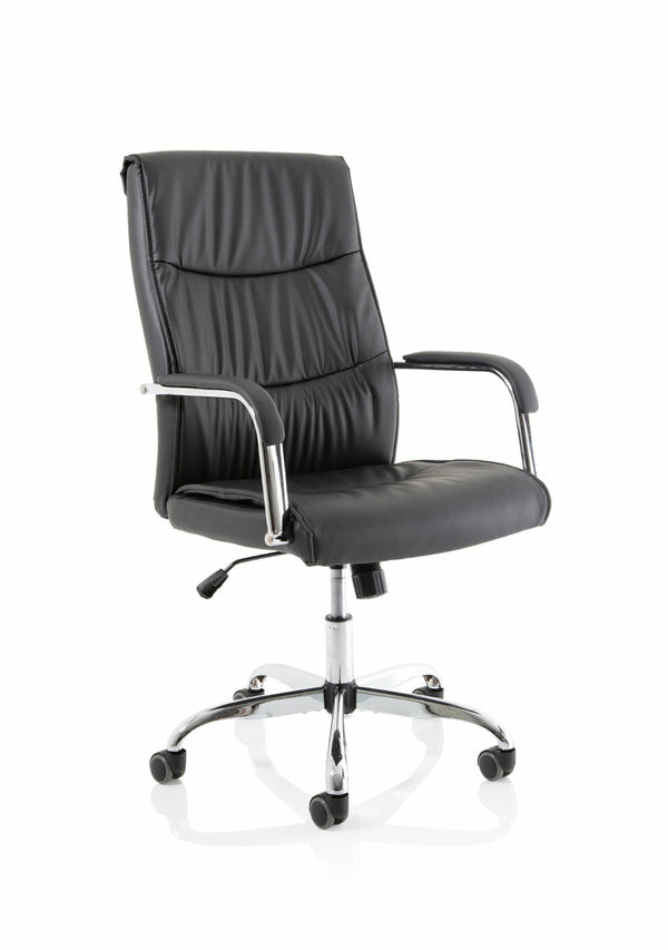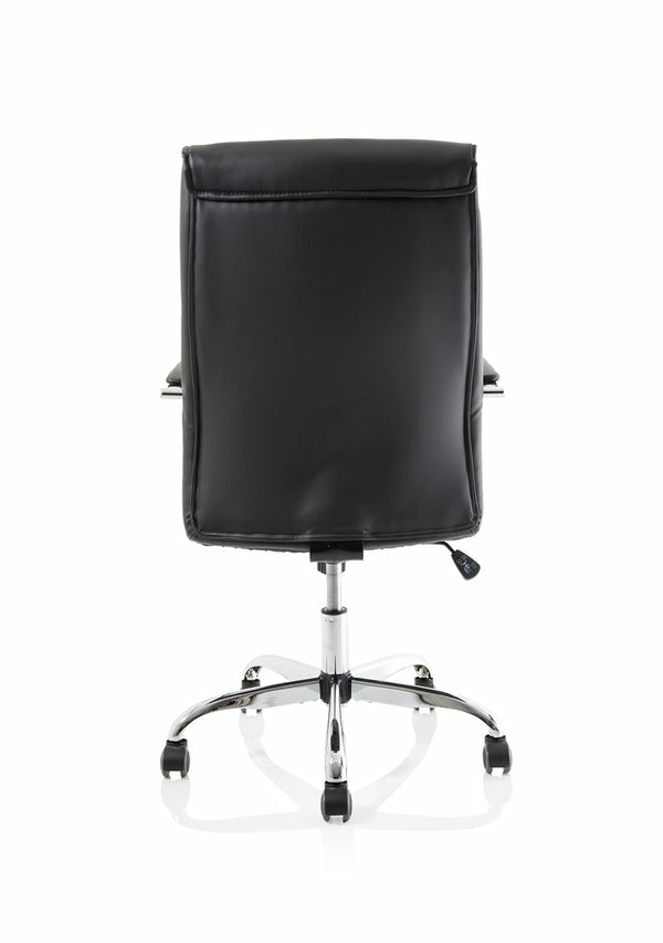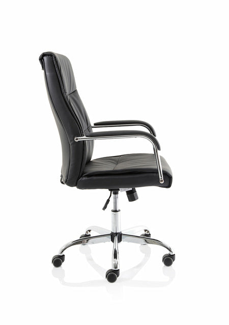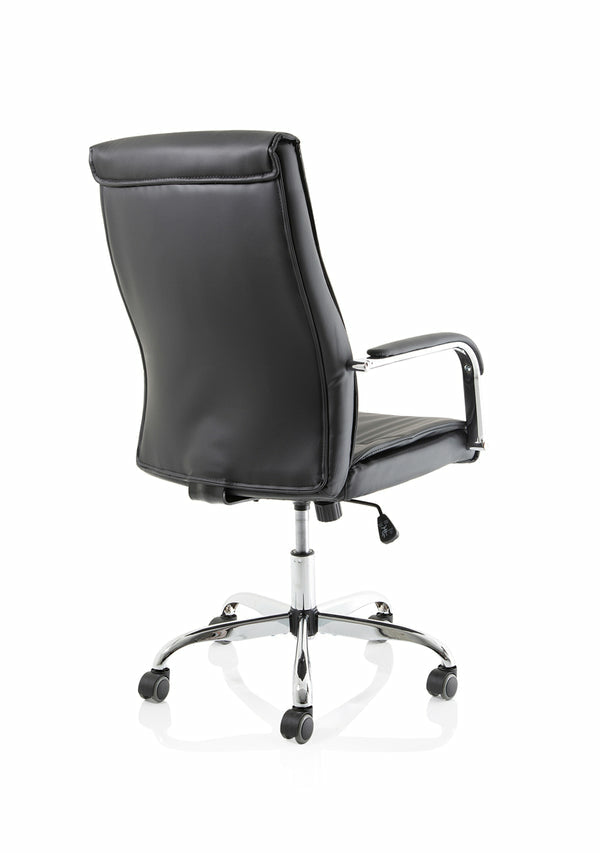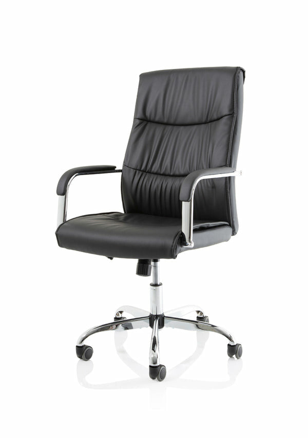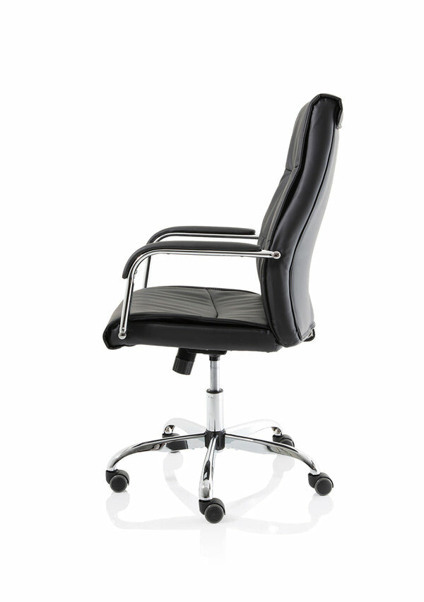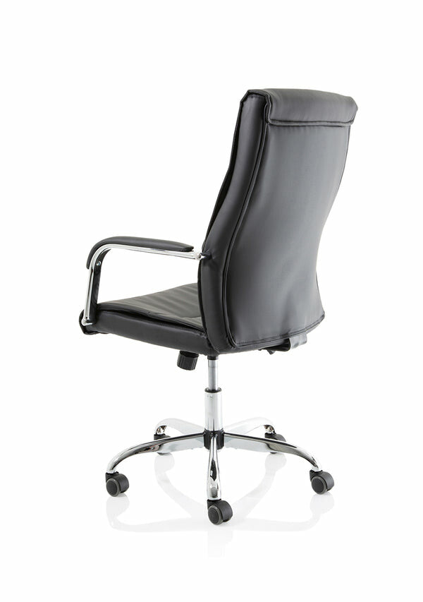 Luxury at a fraction of the usual cost. This high back Carter chair in faux leather has stitch detailing, deep foams and a padded armrest on a chrome frame. A clear case of "Get Carter."