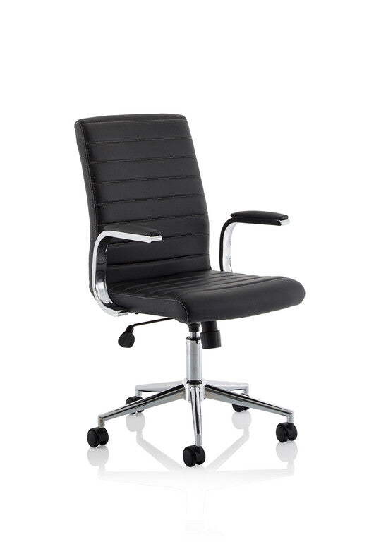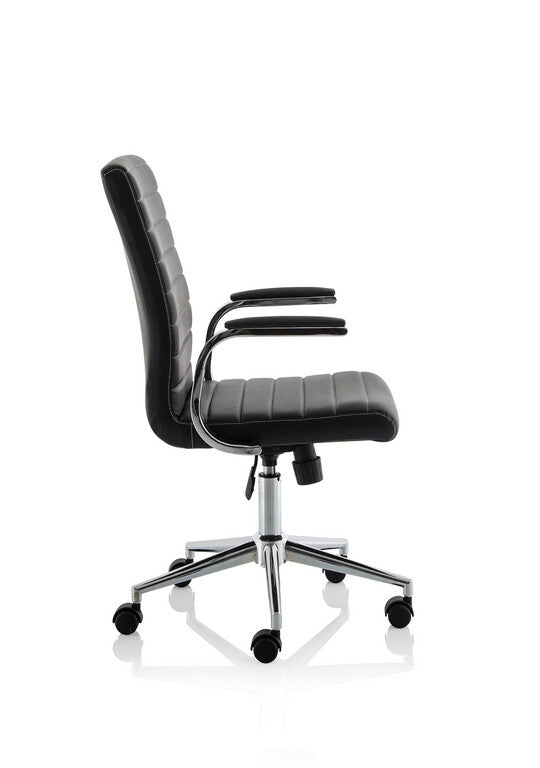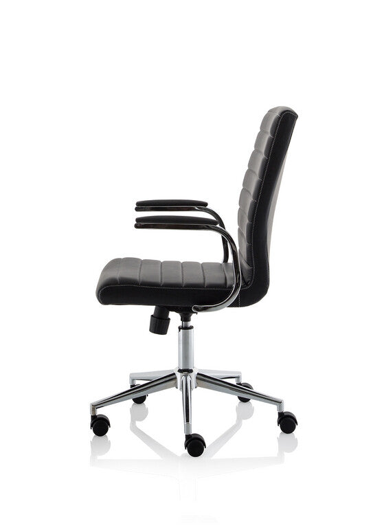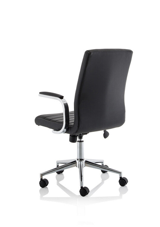 Uber cool and comfortable Ezra features stylish stitching detail, tilting and lock mechanisms and stunning chrome details such as padded boomerang arms.