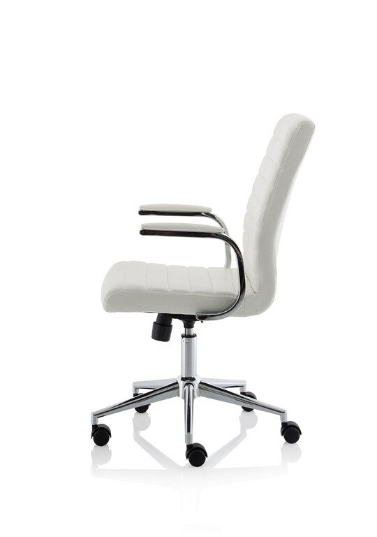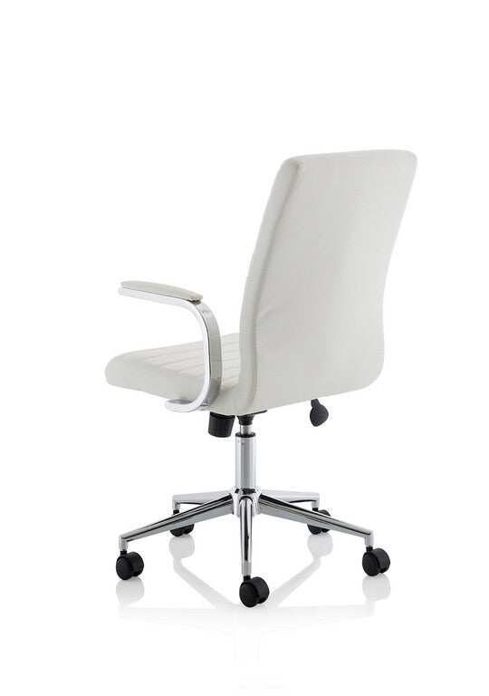 Uber cool and comfortable Ezra features stylish stitching detail, tilting and lock mechanisms and stunning chrome details such as padded boomerang arms.