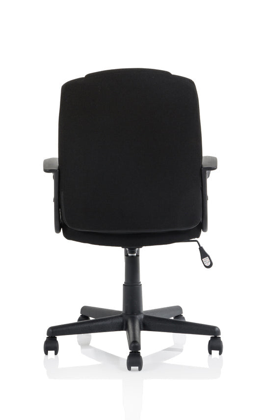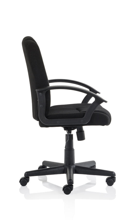 Panelled support upholstery give this budget executive chair with built-in tilting action comfort as well as classic styling. Includes defined lumber curve for extra support.