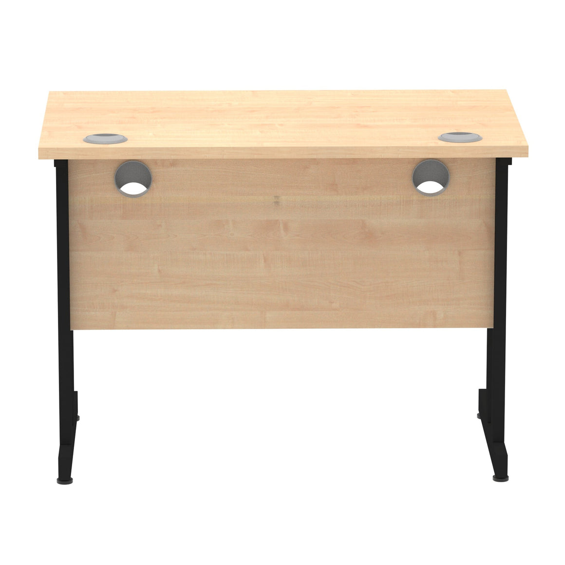 Impulse contract desk | 25mm tops | Heat resistant melamine finish | 18mm modesty panels | 2mm protective abs edging | Double strut legs | 2 cable ports | Height adjustable feet | Steel to steel fixings | 2 modesty panels slots| Deep set modesty panel (5â€) allows for compatibility of most screen clamp fittings