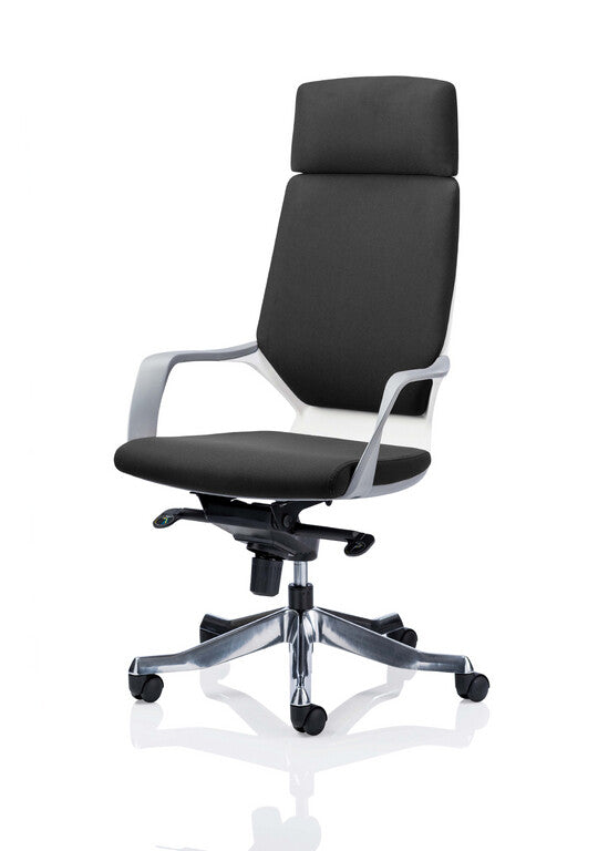 Elegant white or black acrylic shells cradle the most stylish of executive chairs – the Xenon. The shell swoops down from the generously proportioned backrest to integral slim, shaped, arms which fold around to the underside of the seat shell. A high quality knee tilt ensures maximum comfort and avoids discomfort through upper leg blood vessel constriction. High density moulded foams and an integral contoured lumbar support add to the easy-seating package. A brushed aluminium five star base continues the focus on sophisticated styling at ground level. In chemistry Xenon is a member of the noble gas family – in seating it is a member of the style and comfort family.