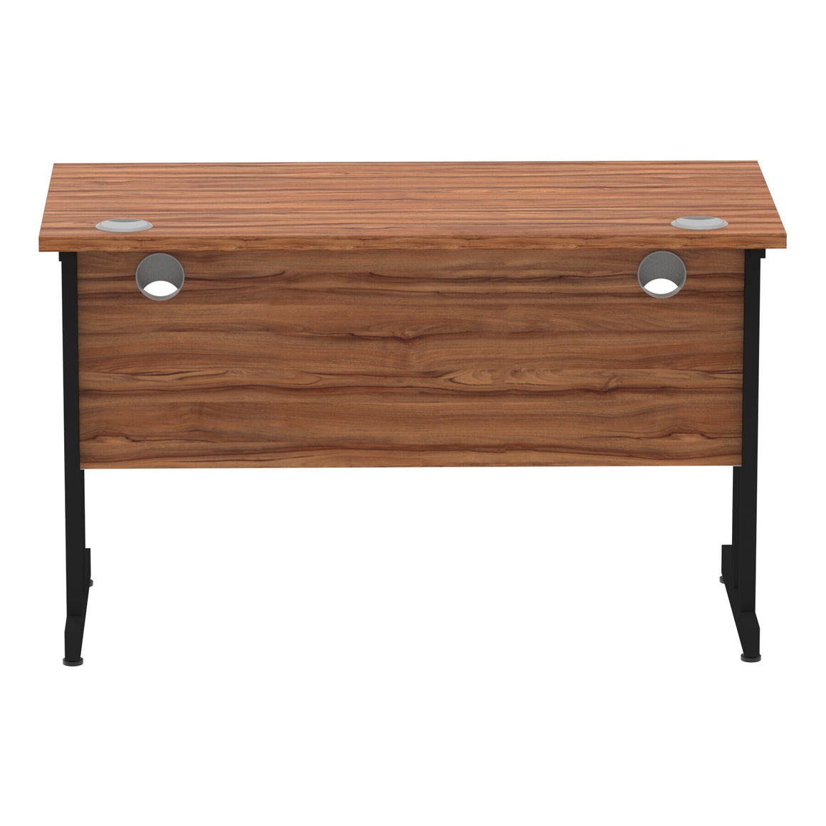 Impulse contract desk | 25mm tops | Heat resistant melamine finish | 18mm modesty panels | 2mm protective abs edging | Silver coated double strut legs | 2 cable ports | Height adjustable feet | Steel to steel fixings | 2 modesty panels slots| Deep set modesty panel (5â€) allows for compatibility of most screen clamp fittings