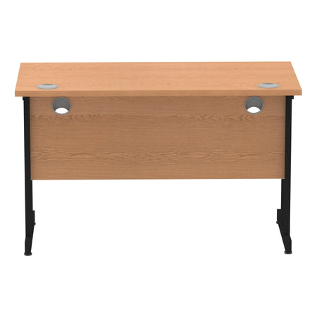 Impulse contract desk | 25mm tops | Heat resistant melamine finish | 18mm modesty panels | 2mm protective abs edging | Silver coated double strut legs | 2 cable ports | Height adjustable feet | Steel to steel fixings | 2 modesty panels slots| Deep set modesty panel (5â€) allows for compatibility of most screen clamp fittings