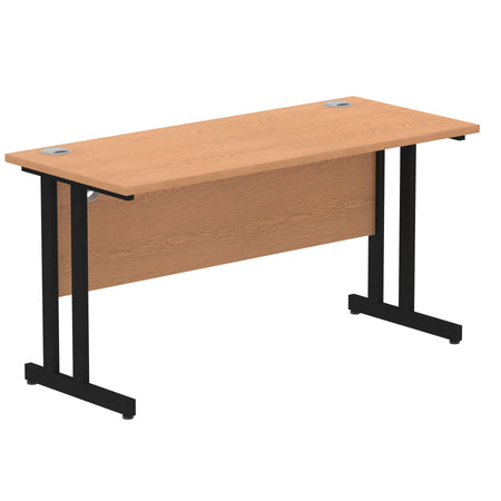 Impulse contract desk | 25mm tops | Heat resistant melamine finish | 18mm modesty panels | 2mm protective abs edging | Silver coated double strut legs | 2 cable ports | Height adjustable feet | Steel to steel fixings | 2 modesty panels slots |Deep set modesty panel (5â€) allows for compatibility of most screen clamp fittings