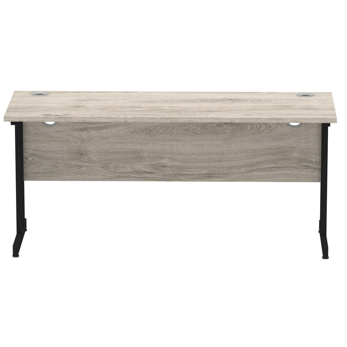 Impulse contract desk | 25mm tops | Heat resistant melamine finish | 18mm modesty panels | 2mm protective abs edging | Silver coated double strut legs | 2 cable ports | Height adjustable feet | Steel to steel fixings | 2 modesty panels slots Deep set modesty panel (5â€) allows for compatibility of most screen clamp fittings