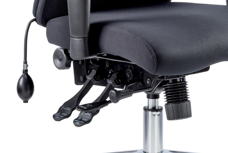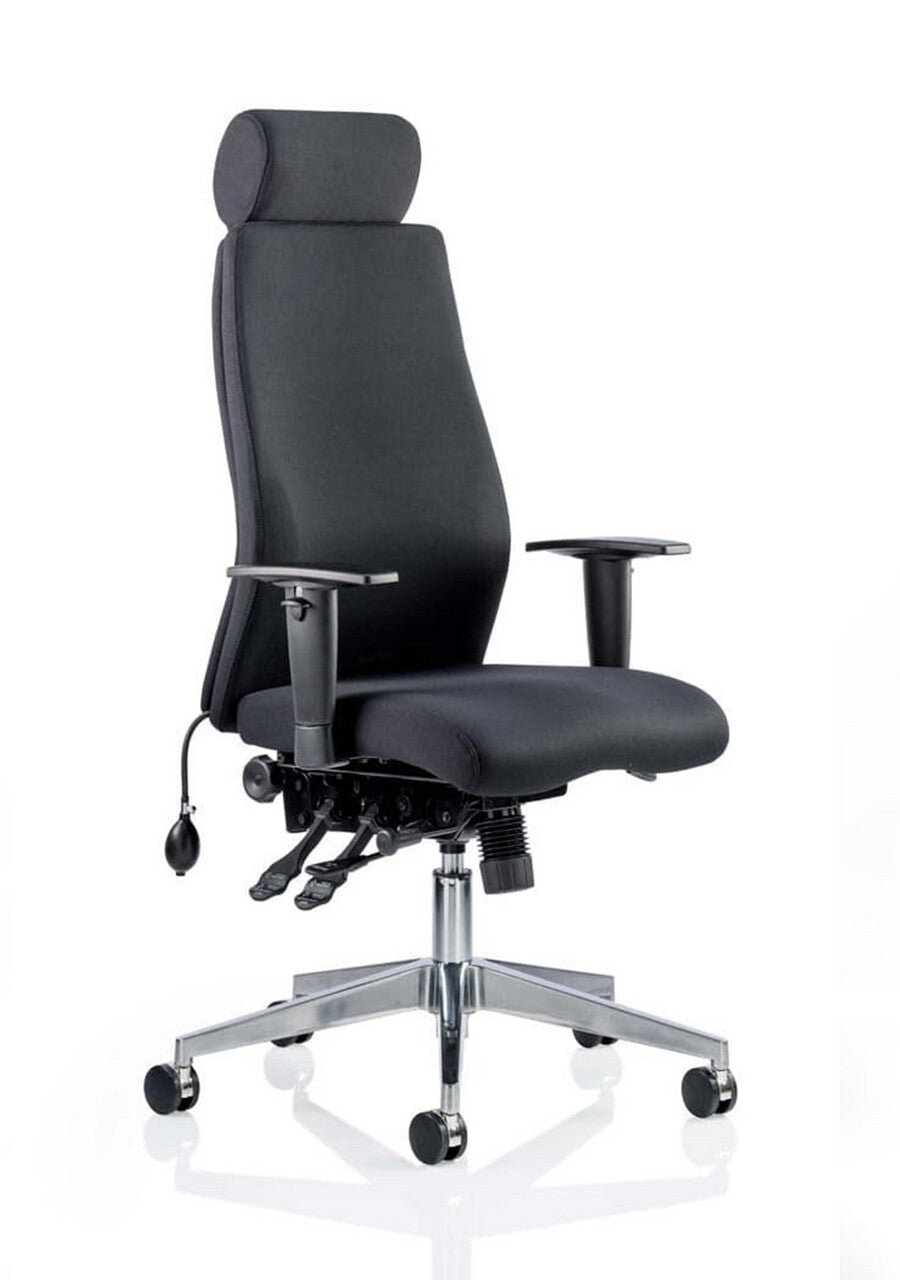 The Onyx chair is a fresh, contemporary office chair that offers a range of inspired features such as a multi-functional asynchronous mechanism with multiple adjustments and a contoured foam seat and back for extra support and comfort. The Onyx is a top choice for a posture task chair. Available in black or blue fabric and Soft Bonded Leather upholstery options. Optional headrest variant available.