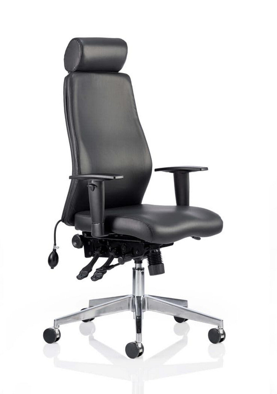 The Onyx chair is a fresh, contemporary office chair that offers a range of inspired features such as a multi-functional asynchronous mechanism with multiple adjustments and a contoured foam seat and back for extra support and comfort. The Onyx is a top choice for a posture task chair. Available in black or blue fabric and Soft Bonded Leather upholstery options. Optional headrest variant available.