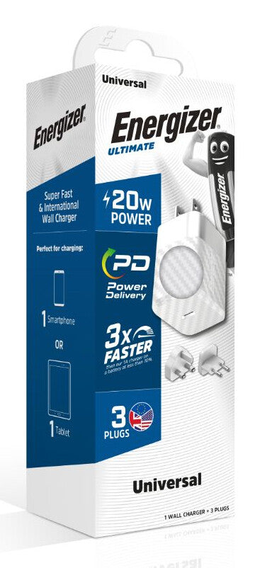 Energizer® Power Delivery Chargers will follow you around the world with 3 power outlet plugs included: