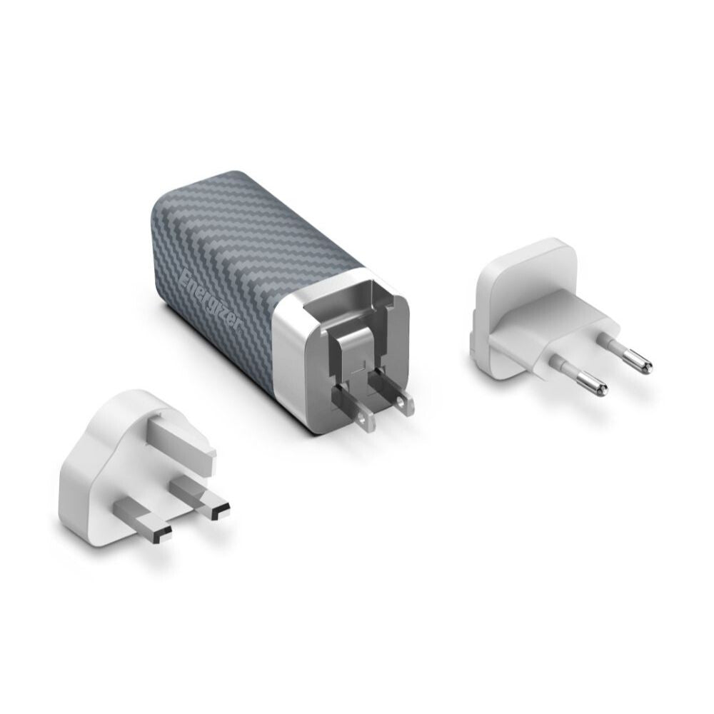 Energizer® Power Delivery Chargers will follow you around the world with 3 power outlet plugs included: