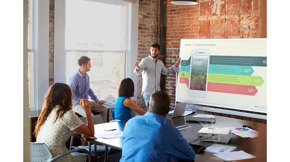 Combined with advance features, the EB-L260F is an entry-level Full HD wireless laser projector the ideal solution for any working environment. It offers 4,600 lumens brightness, a range of wireless and wired connectivity and the ability to have a scalable display size of up to 310 inches.