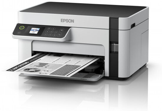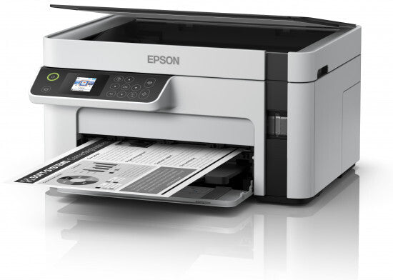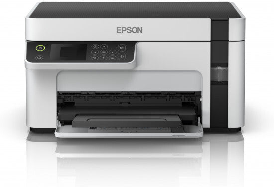 Discover low printing costs using this EcoTank with print, copy, scan and mobile printing. Offering a cost-efficient solution, one bottle of EcoTank ink is the equivalent of five toner cartridges1. The refillable ink tank printer is durable, fast and energy efficient, and this model features a Micro Piezo printhead and 150-sheet front tray.